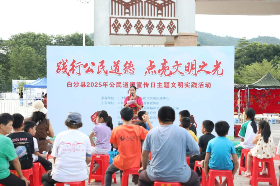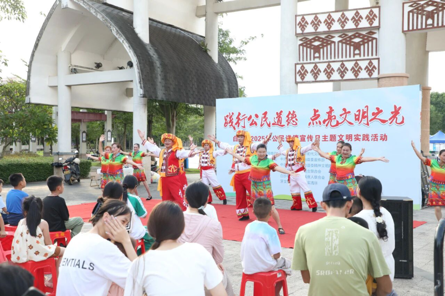 优美的黎族传统歌舞表演用艺术形式诠释着“礼、善、和、美”的传统美德,新时代好少年、道德模范和“海南好人”共同发起文明倡议,《白沙市民公约》集体诵读声朗朗响起,传统文化与现代文明在此交相辉映。