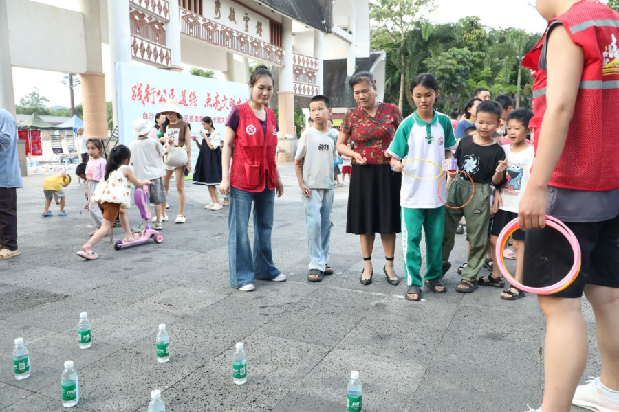 活动在欢快的《黎家丰收乐》舞蹈表演中拉开帷幕,演员们用优美的舞姿展现了黎族文化的魅力,传递了崇德向善的美好寓意。现场,一个个创意十足的互动环节让文明理念变得可感可触:市民们在“文明有礼套圈”游戏中投掷标注文明标语的目标物,在趣味问答中学习文明知识,与可爱的雷公马IP形象合影打卡并转发朋友圈,线上线下同步传播文明新风。