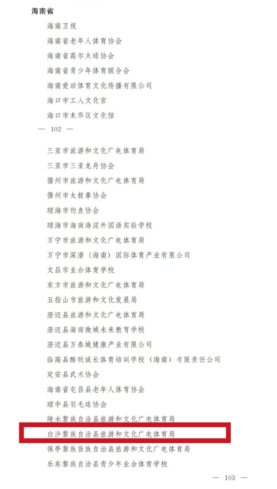 2021-2024年度全国群众体育先进单位名单(海南省)