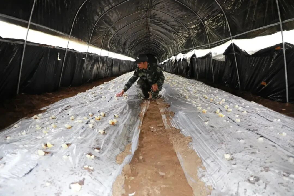 在青松乡林下菌菇产业基地,益条村委会坤保村村民李亚电、刘亚燕夫妇正在忙碌地打理虎乳灵芝。夫妇二人已经在此务工3年,谈及这份家门口的特色产业,他们脸上挂满笑容。“我们夫妻二人在基地打工,每个月近1万元收入。”李亚电、刘亚燕夫妇异口同声,“现在不仅收入稳定,还掌握了养菌技能。”